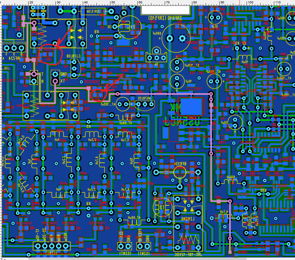 | Цитата raparhiv (  ) Откинул, питание УВЧ (резистор 33ом). Схема стала работать корректно. BC807 полностью закрыт в режиме RX. Буду смотреть, что там садит. У тебя напряжение RX и TX смешиваются в откинутом каскаде.